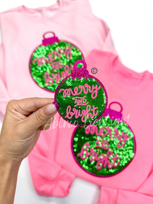 ABLN Boutique - Sequined Merry & Bright Ornament©️ Christmas- Iron on Patch
