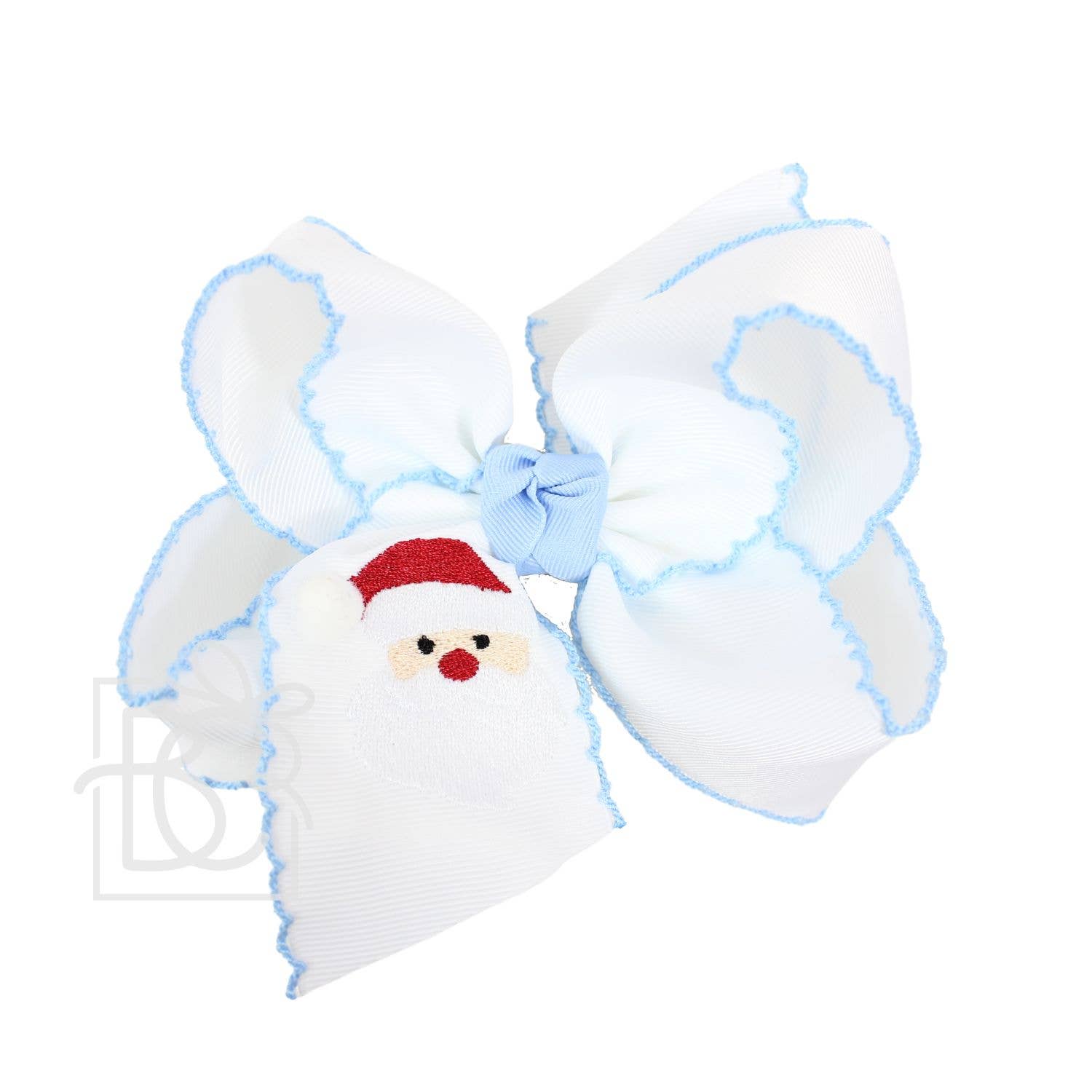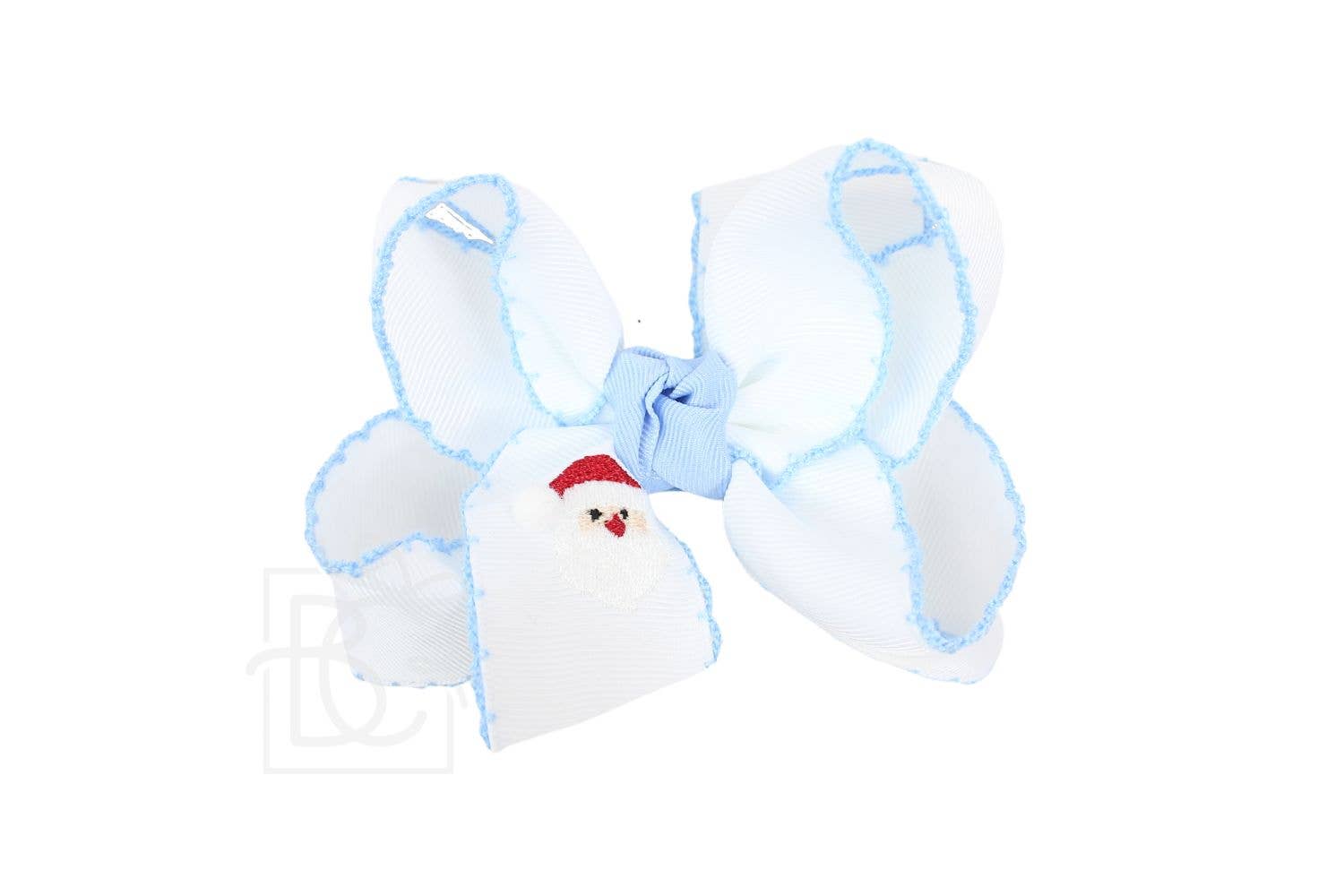 Beyond Creations, LLC - EMBROIDERED SANTA CROCHET EDGE BOWS: White w/ Light Pink Edge / 5.5" Huge